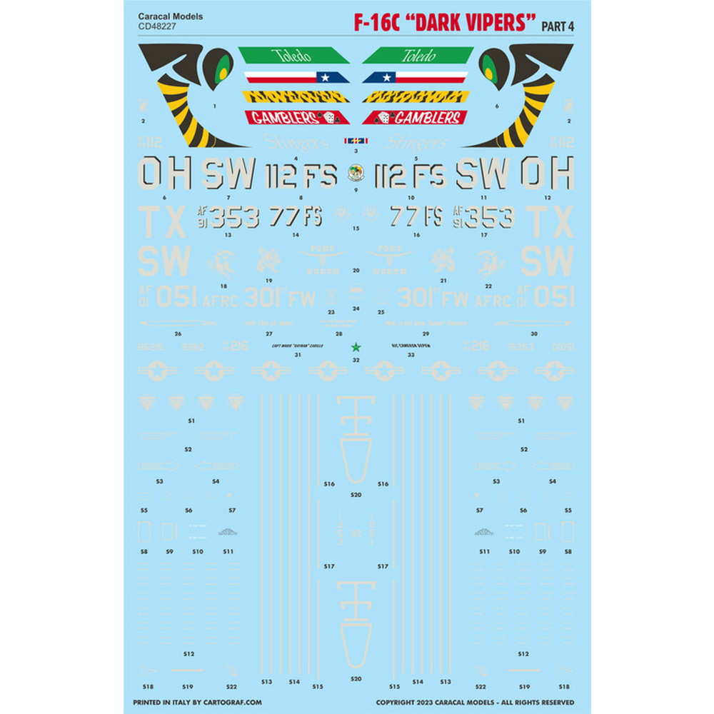 1/48スケールのF-16Cのモデルに対応したデカールのセットです。