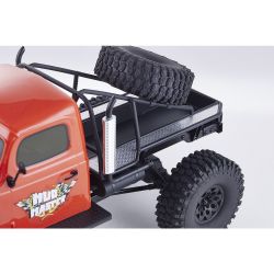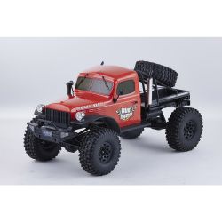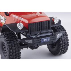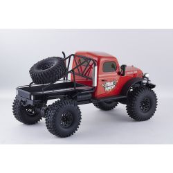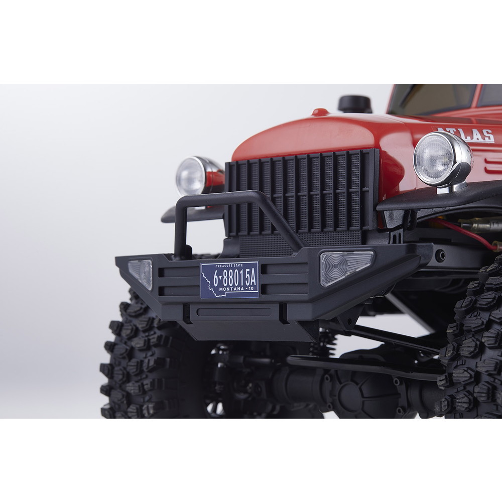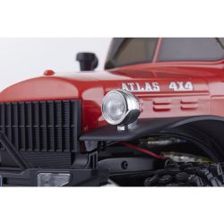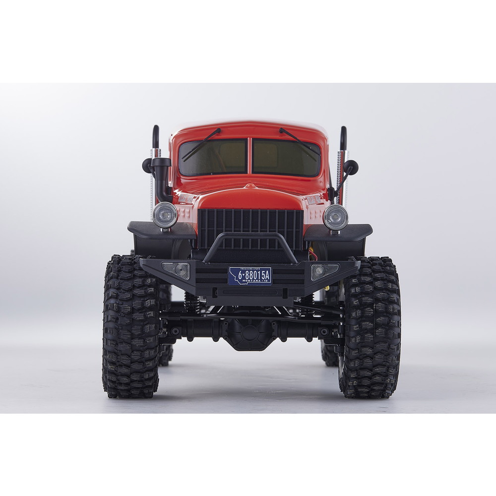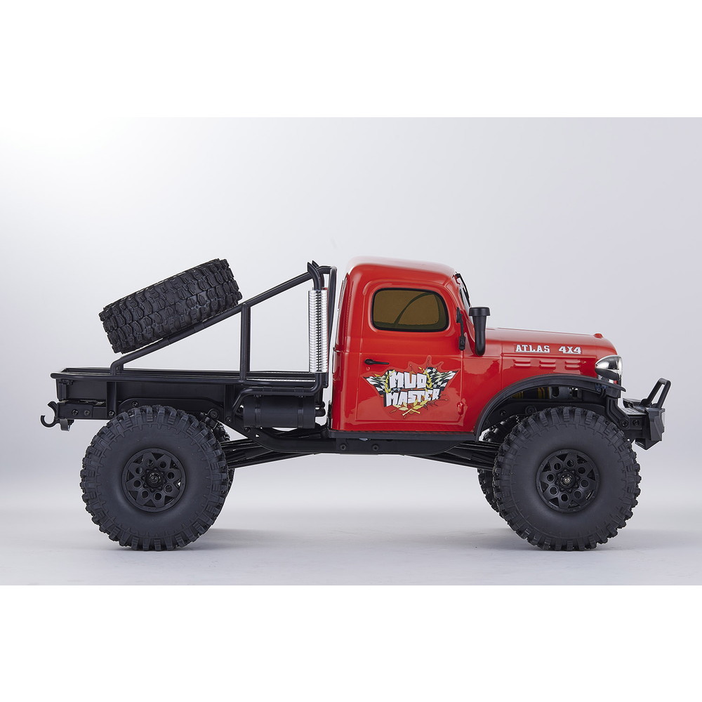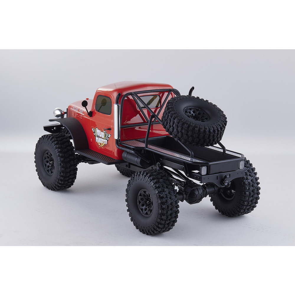 存在感あふれるサイズに電動RCでの走行メカニズムが詰め込まれています。タフな走りを可能にするメカニズムはシャフトドライブのフルタイム4WD。加えて直径12cm、路面をしっかりつかむブロックパターンのトレッドパターンを持つ大径タイヤと大胆にリフトアップされた4リンクサスペンションに金属製フレームと使用した専用シャーシを採用。