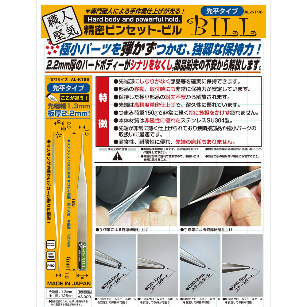 ※職人堅気 精密ピンセット-BILL 0.3幅(超極細タイプ)(AL-K197)の発売に合わせ、職人堅気 精密ピンセット-BILL 0.3幅(超極細タイプ)(AL-K166)は廃盤となります。