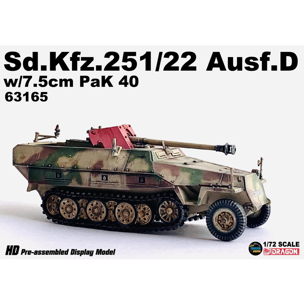 モデルは第二次大戦でドイツ軍が開発、運用した装甲兵員輸送車、Sd.Kfz.251に傑作対戦車砲、7.5cm PaK40を搭載した対戦車自走砲、Sd.Kfz.251/22を再現した1/72スケールの塗装済み完成品です。