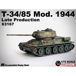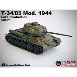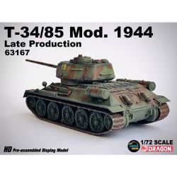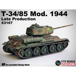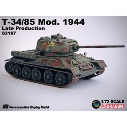 第二次世界大戦から戦後にかけて活躍したソビエト軍の主力戦車T-34の85mm砲搭載型を1/72スケールで再現したプラスチックモデル塗装組み立て済み完成品です。