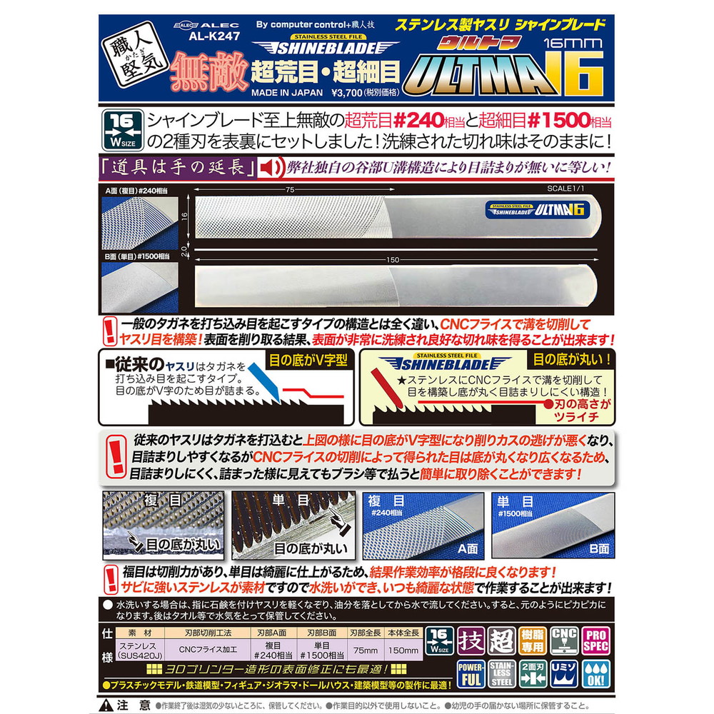 シャインブレード至上無敵の超荒目#240相当と超細目#1500相当の2種刃を表裏にセット。