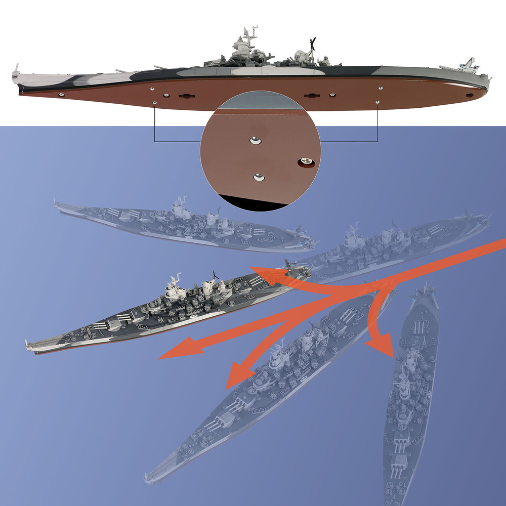 このモデルでは第二次大戦中に施された独特なデザインの雲形迷彩を再現。モデルの船底部分はダイキャスト製で重量感も表現。