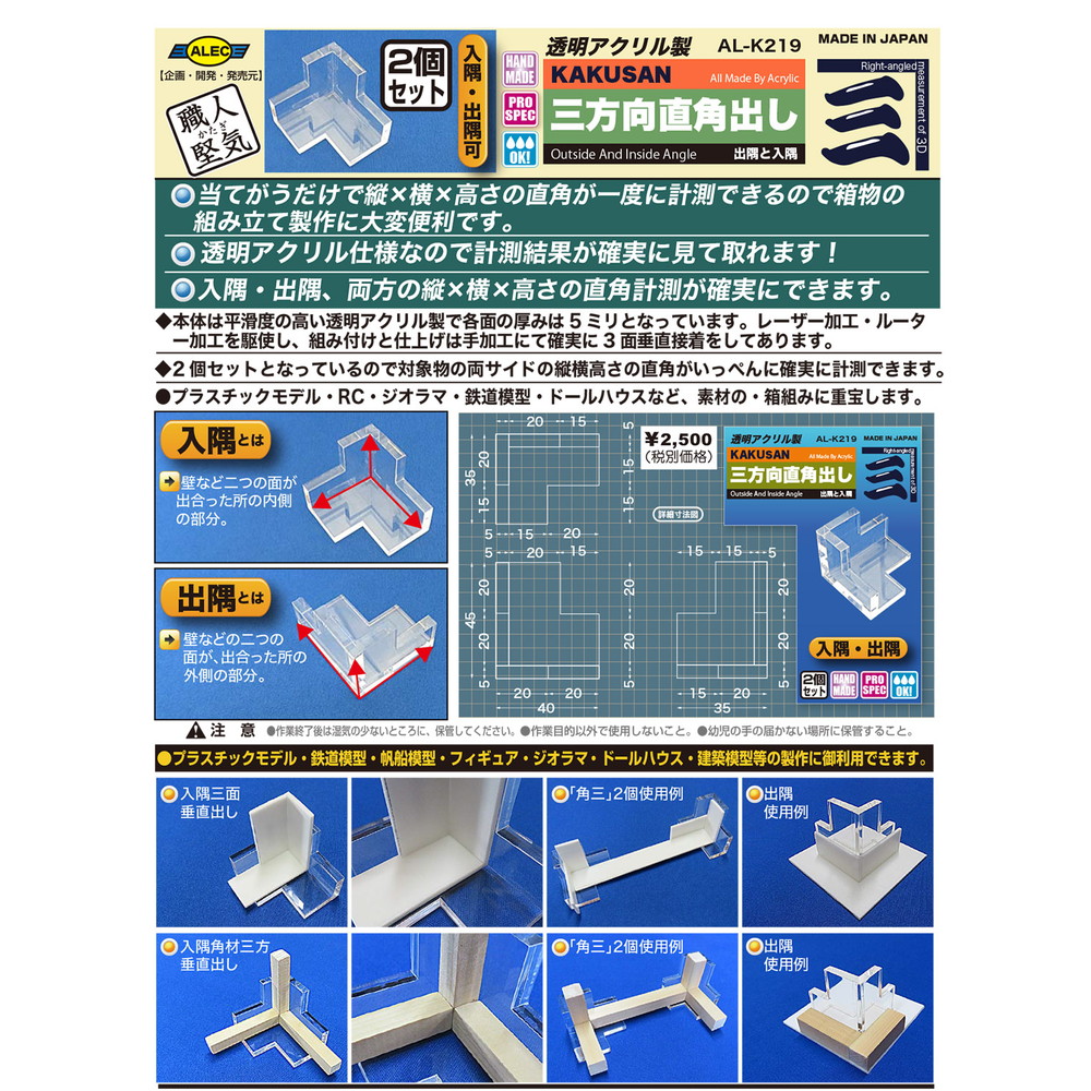 ※職人堅気 透明アクリル製三方向直角出し角三(かくさん)(AL-K219)の発売に合わせ、透明アクリル製三方向直角出し角三(かくさん)(AL-K93)は廃盤となります。