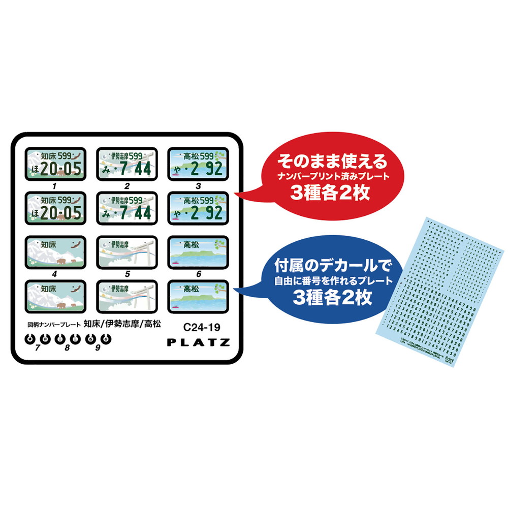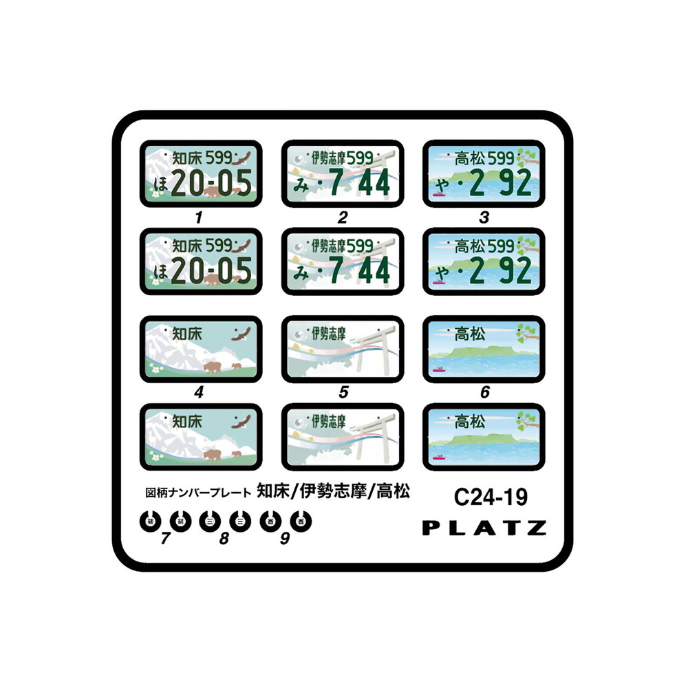 このセットでは北海道知床周辺市町7町、三重県伊勢志摩、そして、香川県高松市の図柄ナンバー、計3種をモデル化。