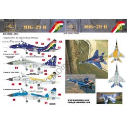 このセットはHADモデルが地元、ハンガリー空軍が1998年に60周年を迎えたのを記念してスペシャル塗装を施したMig-29Bのマーキングを収録しています。カラフルな仕上がりが見逃せません。加えて、このセットでは尾翼に星などのマーキングを施したインド空軍のKb707機のマーキング、3-6103機のマーキング、そして、バングラディッシュ空軍506機のマーキングも入っています。