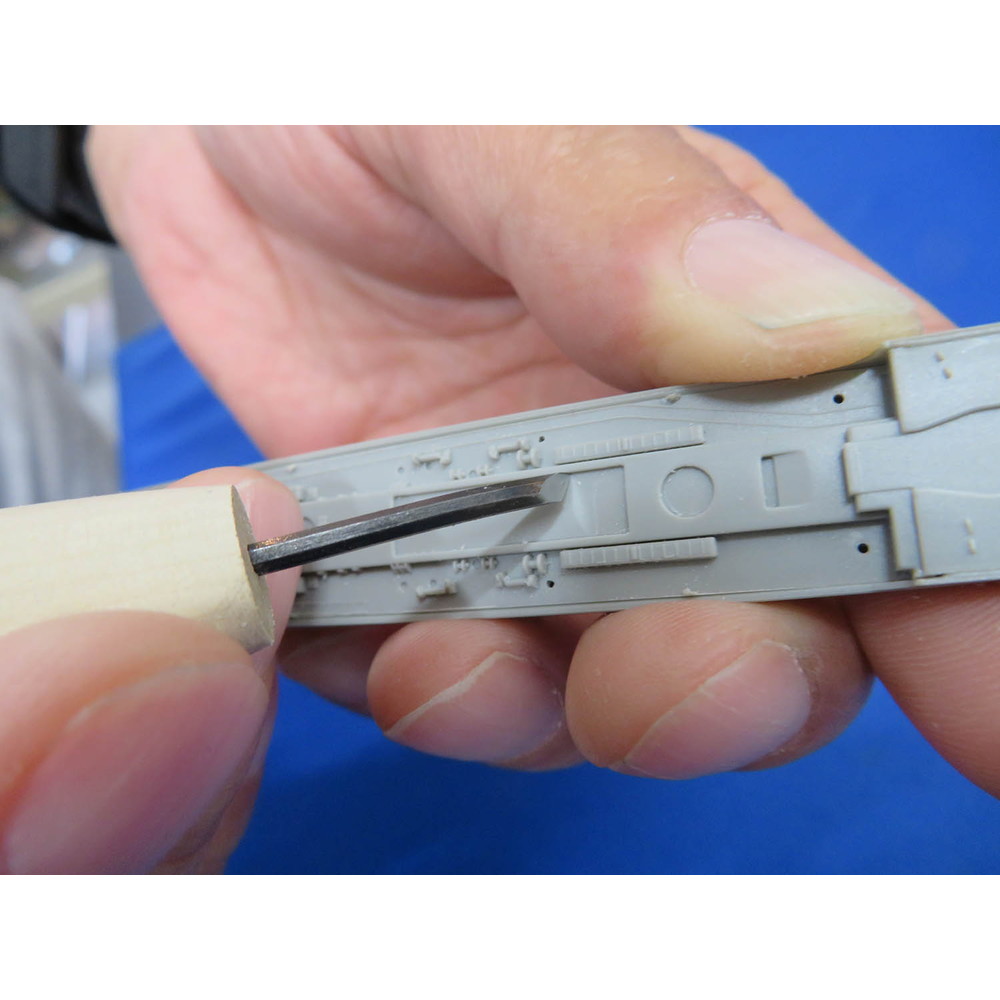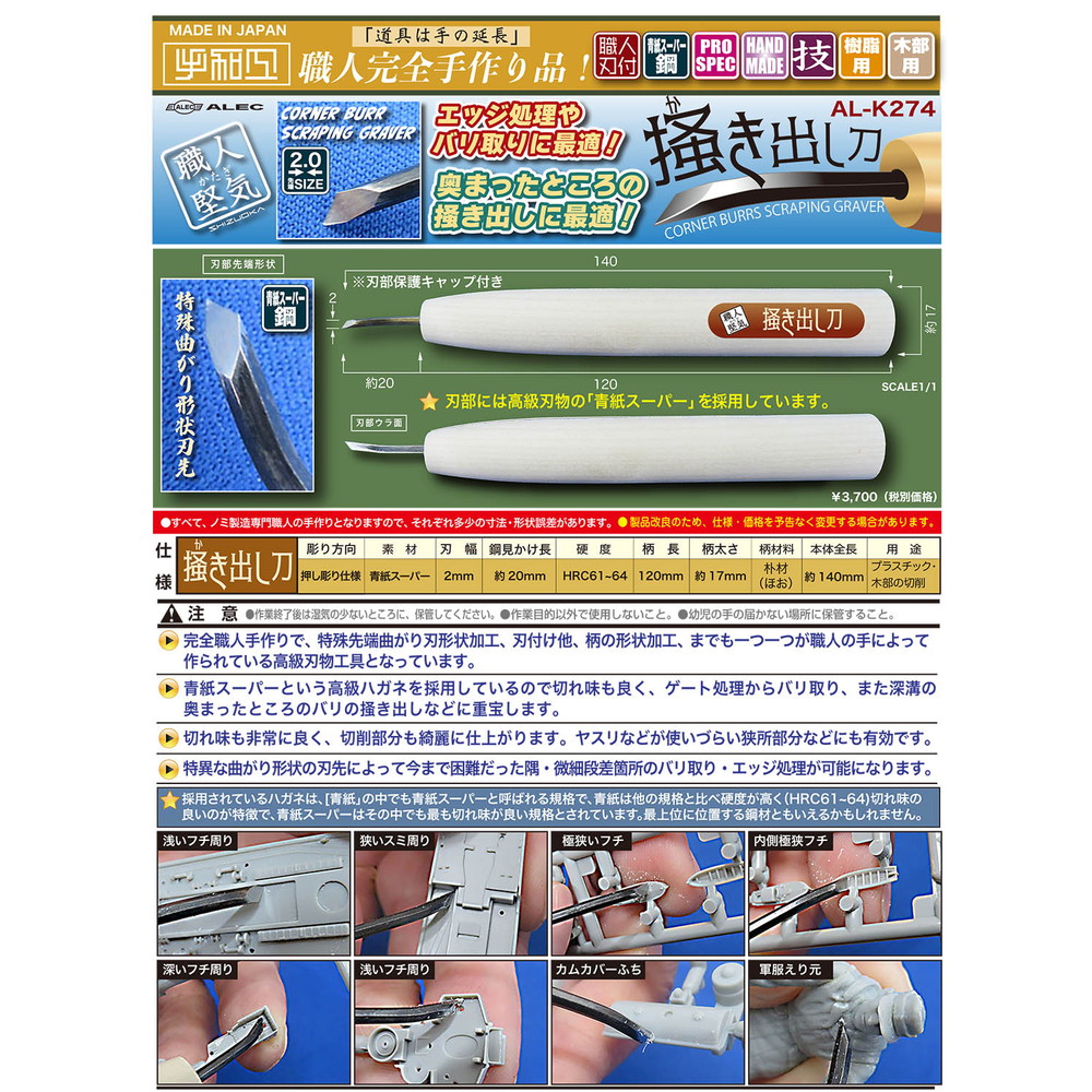 ●青紙スーパーという高級ハガネを採用しているので切れ味も良く、ゲート処理からバリ取り、また深溝の奥まったところのバリの掻き出しなどに重宝します。