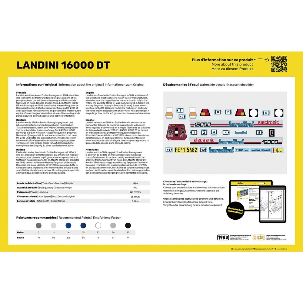 1/24スケールでランディーニ社のトラクターを再現したプラスチックモデル組み立てキットです。1986年に発売された16000DTをモデル化しています。