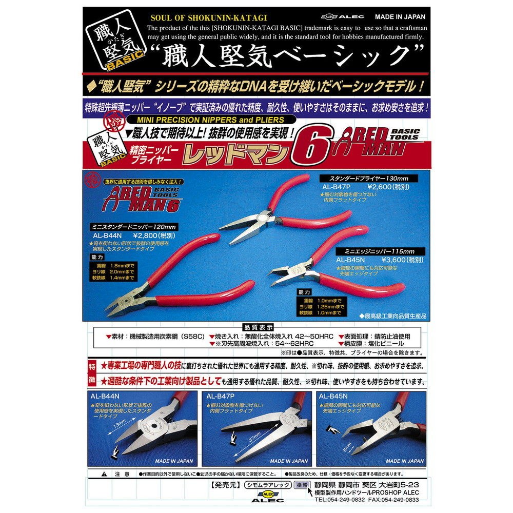 ※レッドマン6(AL-B47P)の発売に合わせ、精密ニッパー レッドマン5 スタンダード プライヤー130mm(AL-B38P)は廃盤となります。