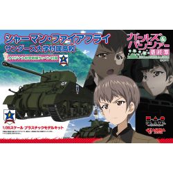 シャーマン・シリーズ中最強の対戦車戦闘力を誇るファイアフライを1/35スケールでモデル化し、サンダース大学付属高校 オリジナル校章刺繍ワッペンをセットしたキットです。