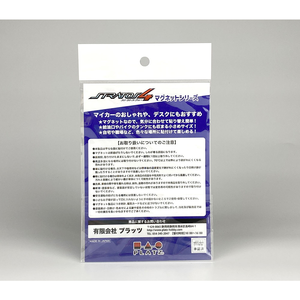 右肩に付けられたお馴染みのマークで、原作を元に精密に再現。車はもちろんオフィスの机や冷蔵庫などに貼り付け、ストラトス・フォーの世界を楽しんでください。