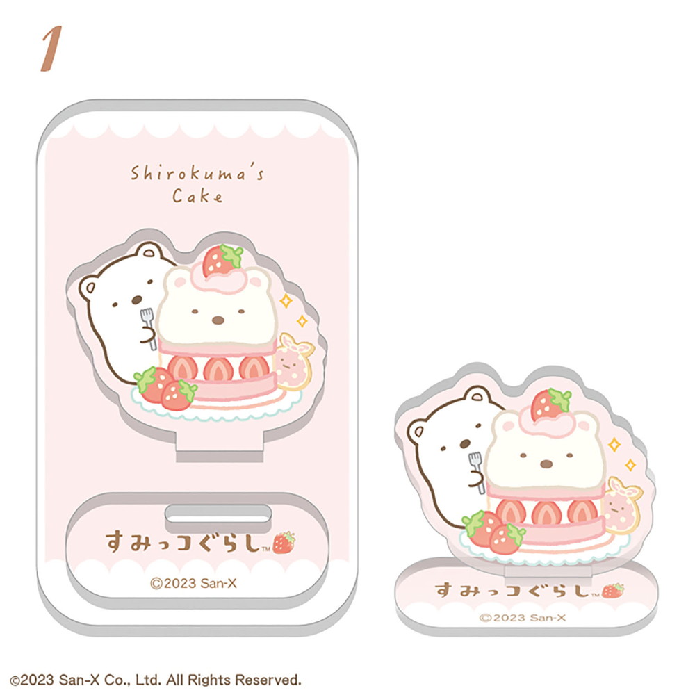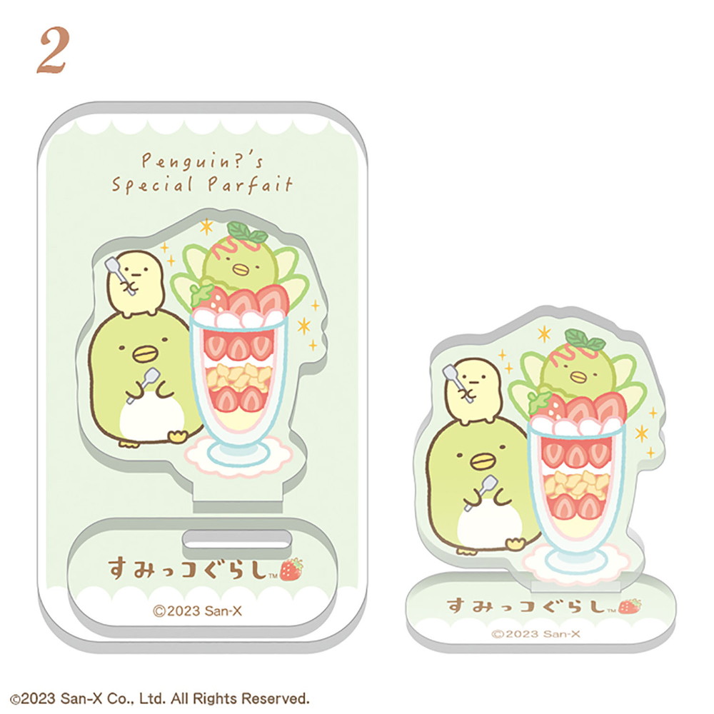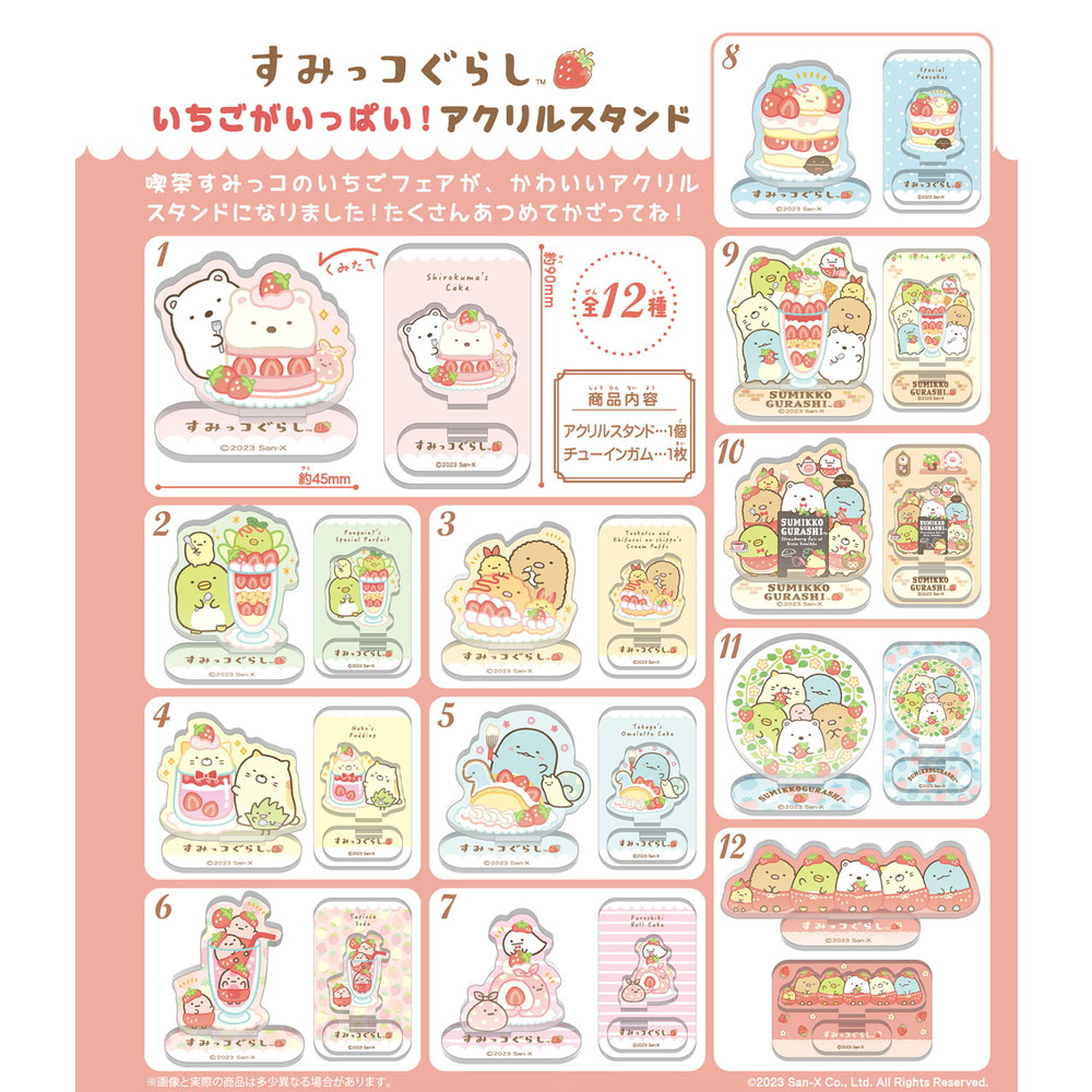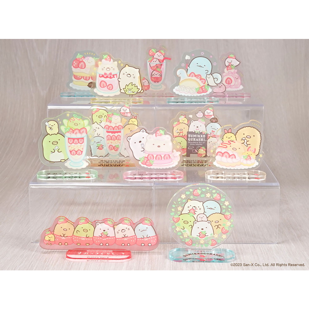 喫茶すみっコのいちごフェアが、かわいいアクリルスタンドになりました!たくさんあつめてかざってね!