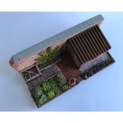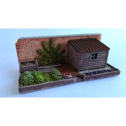 壁にかこまれた小さな庭園を切り取った塗装済みの情景で、小屋やリンゴの木、菜園などイギリスの住宅街らしいこじんまりとした雰囲気が見事に再現されています。