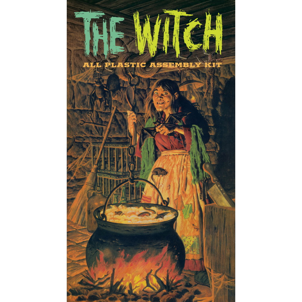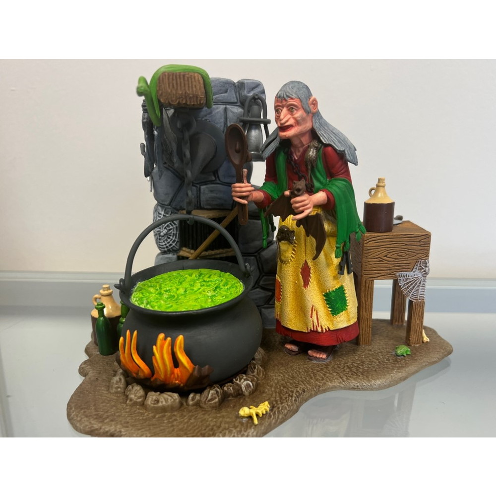 魔女は長い髪に大きな鼻、鍋の中をかき混ぜる大きなスプーンを右手に、左手には鍋に入れるコウモリを持った姿を再現しています。