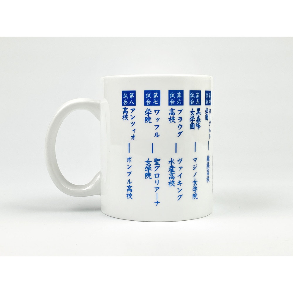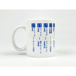冬季無限軌道杯出場の16チームの校名と『日本戦車道連盟』のマークをデザインしたマグカップです。