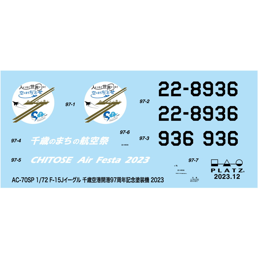モデルはすでに飛行機模型ファンには高い評価を集めているプラッツの1/72航空自衛隊F-15Jイーグルをベースに、2023年7月に開催された千歳基地航空祭に登場した記念塗装機を再現したプラスチックモデル組み立てキットです。