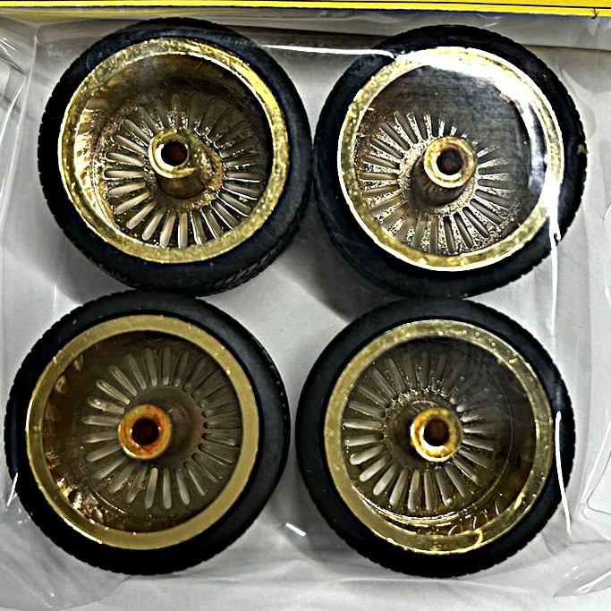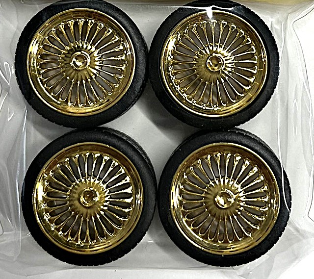 このセットは1/24スケールのカーモデル用タイヤとホイール4本のセットです。