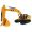 動きは前後進、左右旋回が可能。そして、アームは上下に操作可能です。また、メインアームの先のスモールアーム、その先端に取り付けられたバケットは連動。