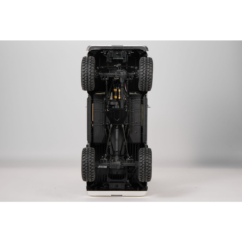 路面をしっかりつかむブロックパターンのトレッドを持つ大径タイヤとサスペンション、パワフルな550タイプモーターを搭載、2スピードトランスミッションや前後デフロックメカも装備して力強い走りを生み出します。