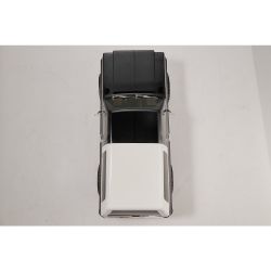 後部の荷台デッキはロールバーと、ハードトップが用意され、付け替えて表情の違いも楽しめます。そのボディを搭載するシャーシはハブリダクションメカを使ってロードクリアランスを確保。