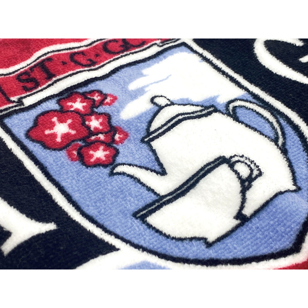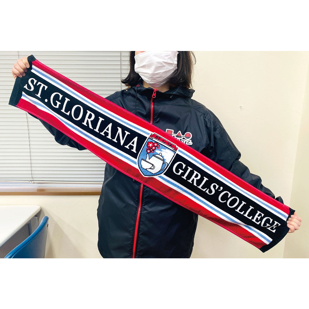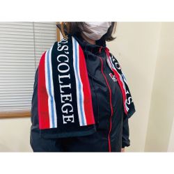 制服やパンツァージャケットのカラーをベースに校名と校章がデザインされたタオル素材は、今治産・コットン100%でとてもふんわりとした肌触り。