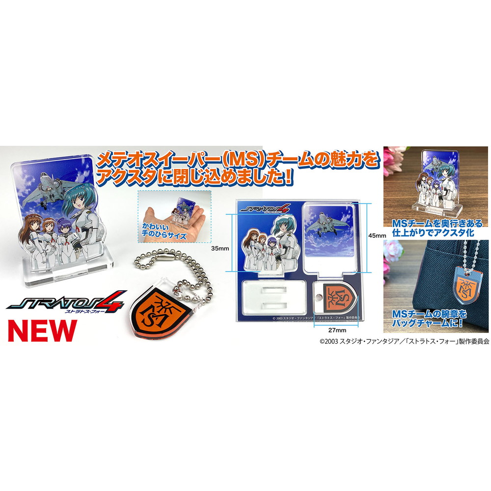 メテオスイーパー(MS)チームのエンブレム刺繍ワッペン&マグネットシートに続く第三弾は、主人公の本庄美風たち4人のMSチームを再現したアクリルスタンドです。