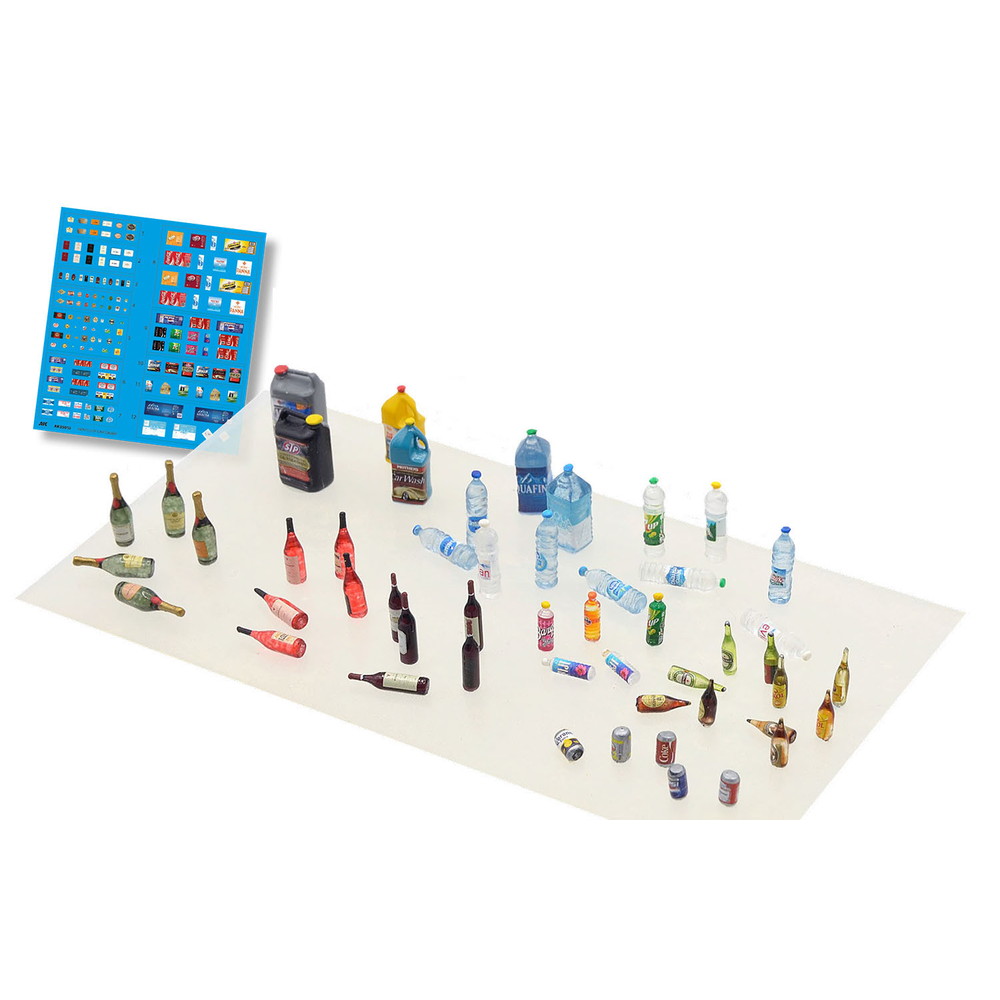 さらに、デカールで瓶や缶、ペットボトルのラベルを用意。日本であまり見かけないラベルなどが楽しみです。