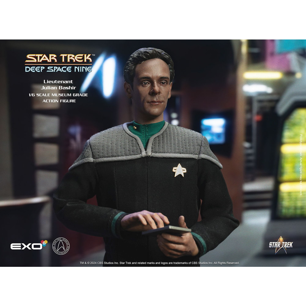 スタートレックのディープ・スペース・ナインの宇宙ステーションで主任医務官を努めたドクター・ジュリアン・ベシアを再現した完全新金型・新造形のアクションフィギュアです。