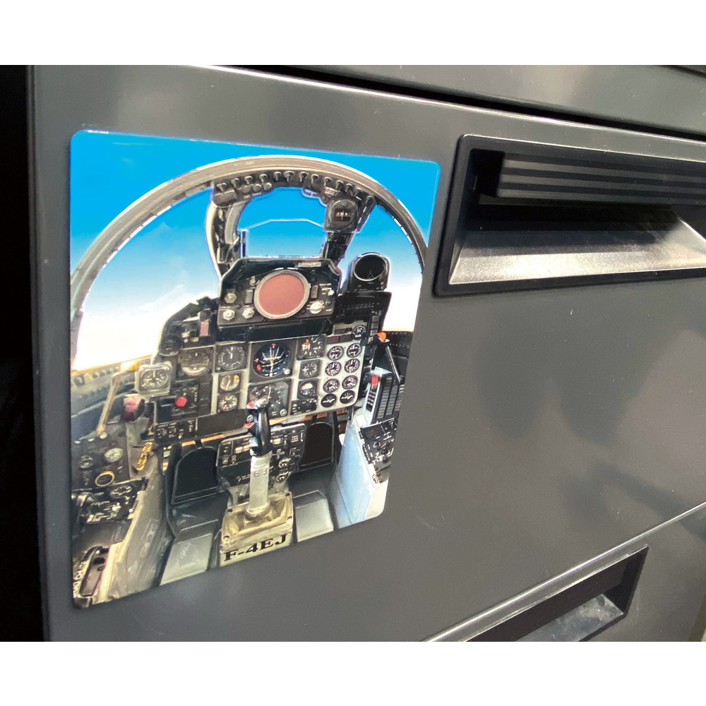 航空自衛隊のF-4EJファントムIIのコクピットを操縦席から撮影した画像をアルミの金属板にプリント。
