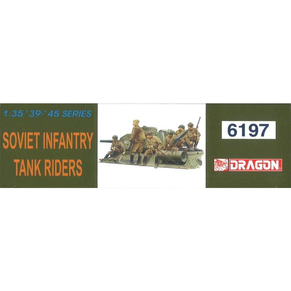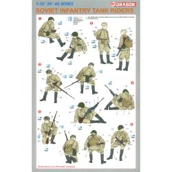 第二次世界大戦のソビエト軍歩兵を戦車の車体上部に乗って移動する姿で再現した1/35スケールのプラスチックモデル組み立てキットです。