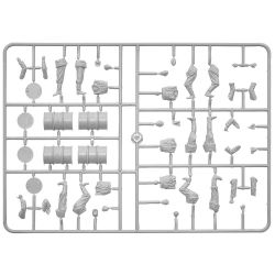 またこのキットには200バレル容量のドラム缶8本もセット。加えて貨車にドラム缶を載せる作業のポージングで再現されたドイツ軍兵士5体も付属。