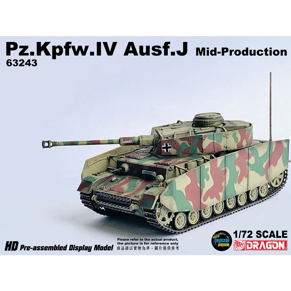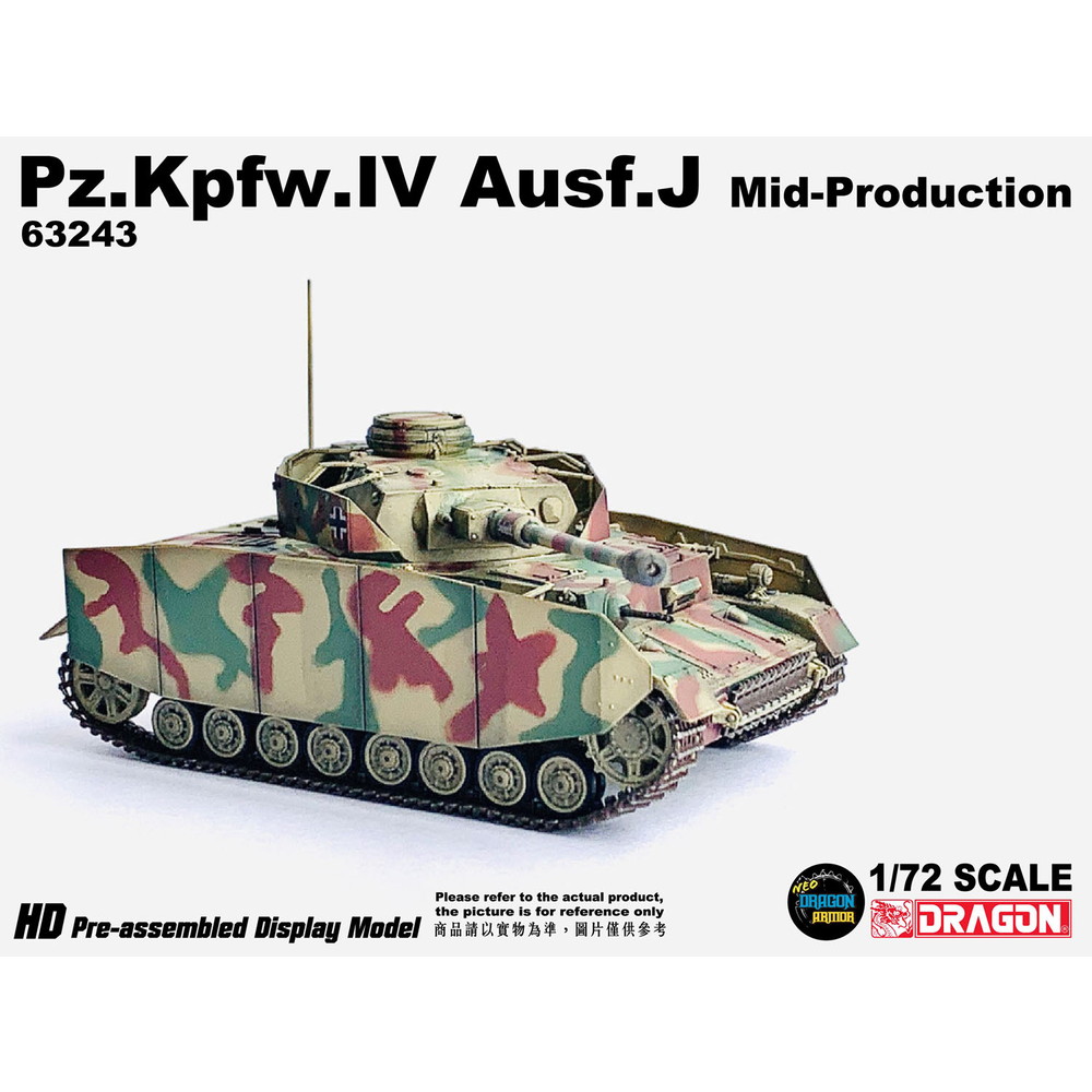 モデルは1/72スケールでドイツの軍馬と呼ばれたIV号戦車の最終生産型であるJ型の1944年8月から9月にかけて生産された中期生産型を再現したプラスチックモデルの塗装組み立て済み完成品です。