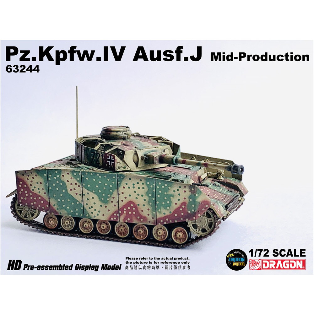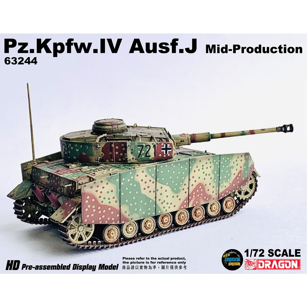 モデルは1/72スケールでドイツの軍馬と呼ばれたIV号戦車の最終生産型であるJ型の1944年8月から9月にかけて生産された中期生産型を再現したプラスチックモデルの塗装組み立て済み完成品です。