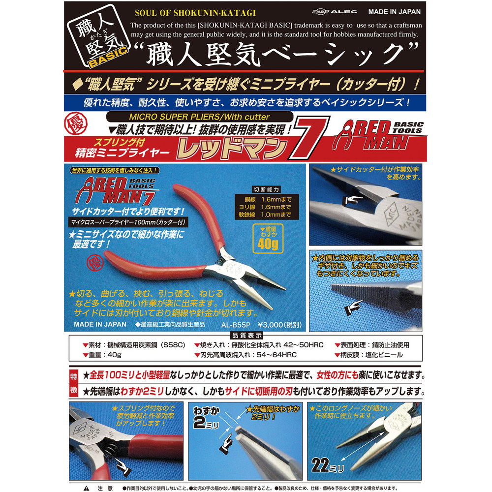 ※職人堅気 レッドマン7 サイドカッター付ミニプライヤー(AL-B55P)の発売に合わせ、職人堅気 レッドマン6 サイドカッター付ミニプライヤー(AL-B49P)は廃盤となります。