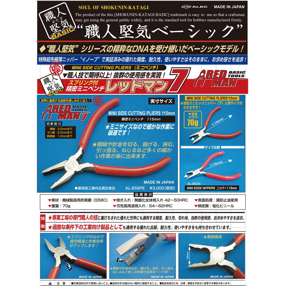 ※職人堅気 レッドマン7 ミニペンチ 115mm(AL-B56PE)の発売に合わせ、職人堅気 レッドマン6 ミニペンチ 115mm(AL-B50PE)は廃盤となります。