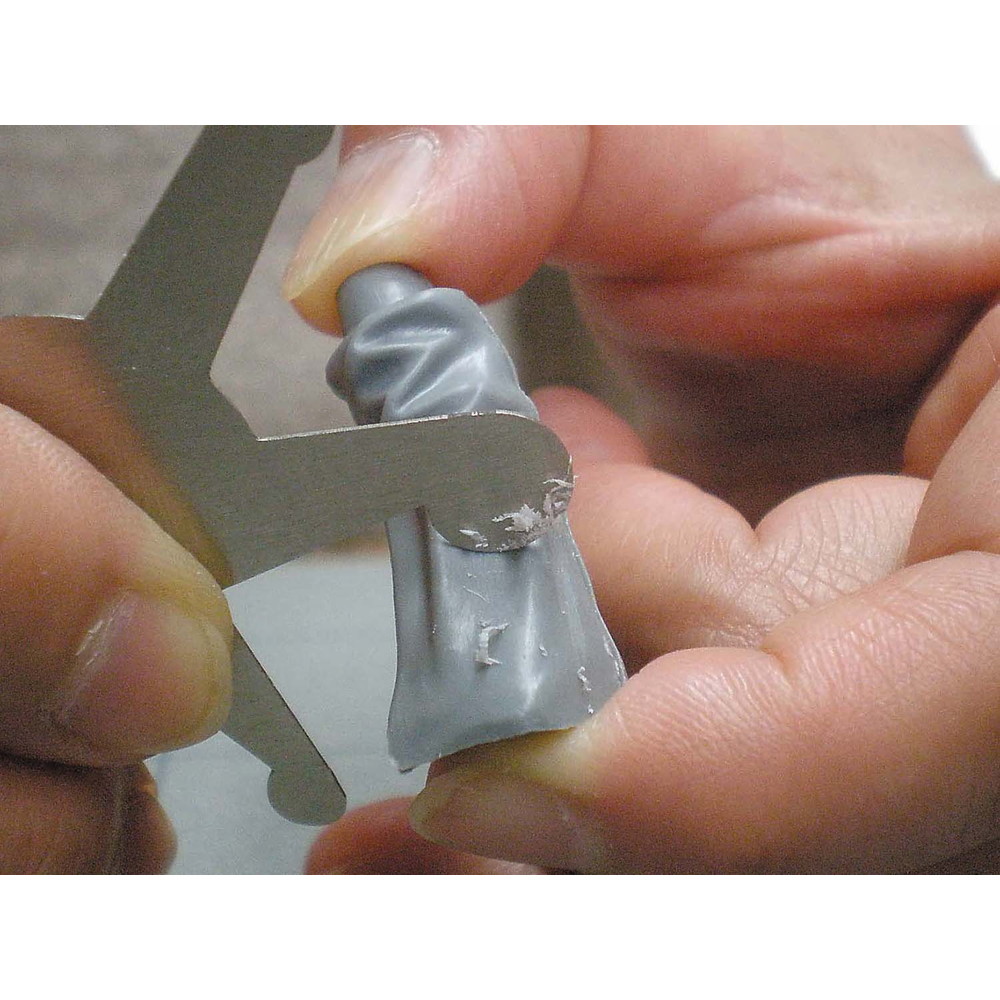 6種類のR凸部を加工しており、対象物に合わせたR部の切削加工が出来、微細な内 側、外側に関わらずパーティングライン消し、フィギュアR部の深溝加工、筒体内側の 肉薄加工他、各種造型に最適。