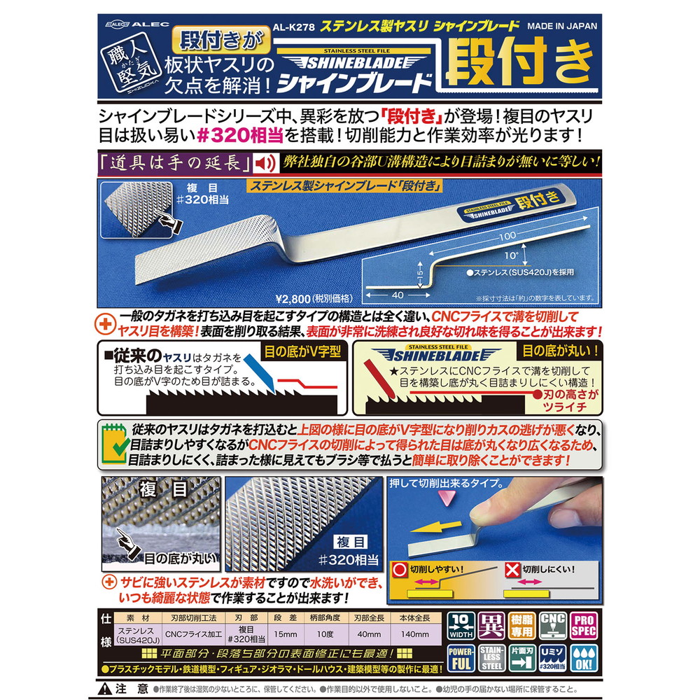 複目のヤスリ目は扱い易い#320相当を搭載!切削能力と作業効率が光ります!