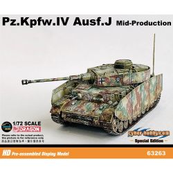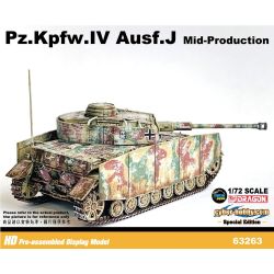 モデルは1/72スケールでドイツの軍馬と呼ばれたIV号戦車の最終生産型であるJ型の中期生産型(1944年8〜9月生産)を再現したプラスチックモデルの塗装組み立て済み完成品です。