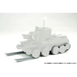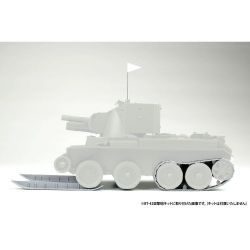 また砲塔上部に装備するフラッグとその支柱(金属線)も付属し、車体に描かれた校章はデカールで用意しました。準決勝での終盤、大洗チームとの息を飲む大滑降バトル時に、スキー装備で大きく変貌したBT-42の姿を手軽に楽しんでいただけます!