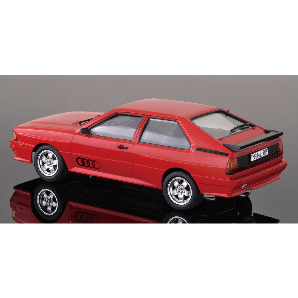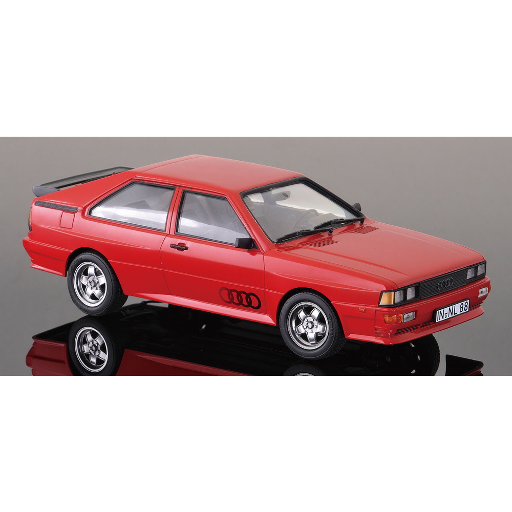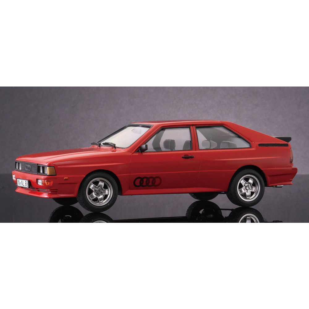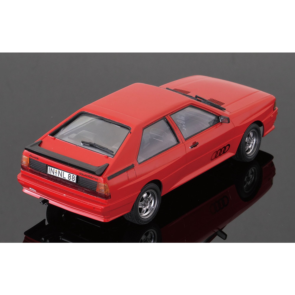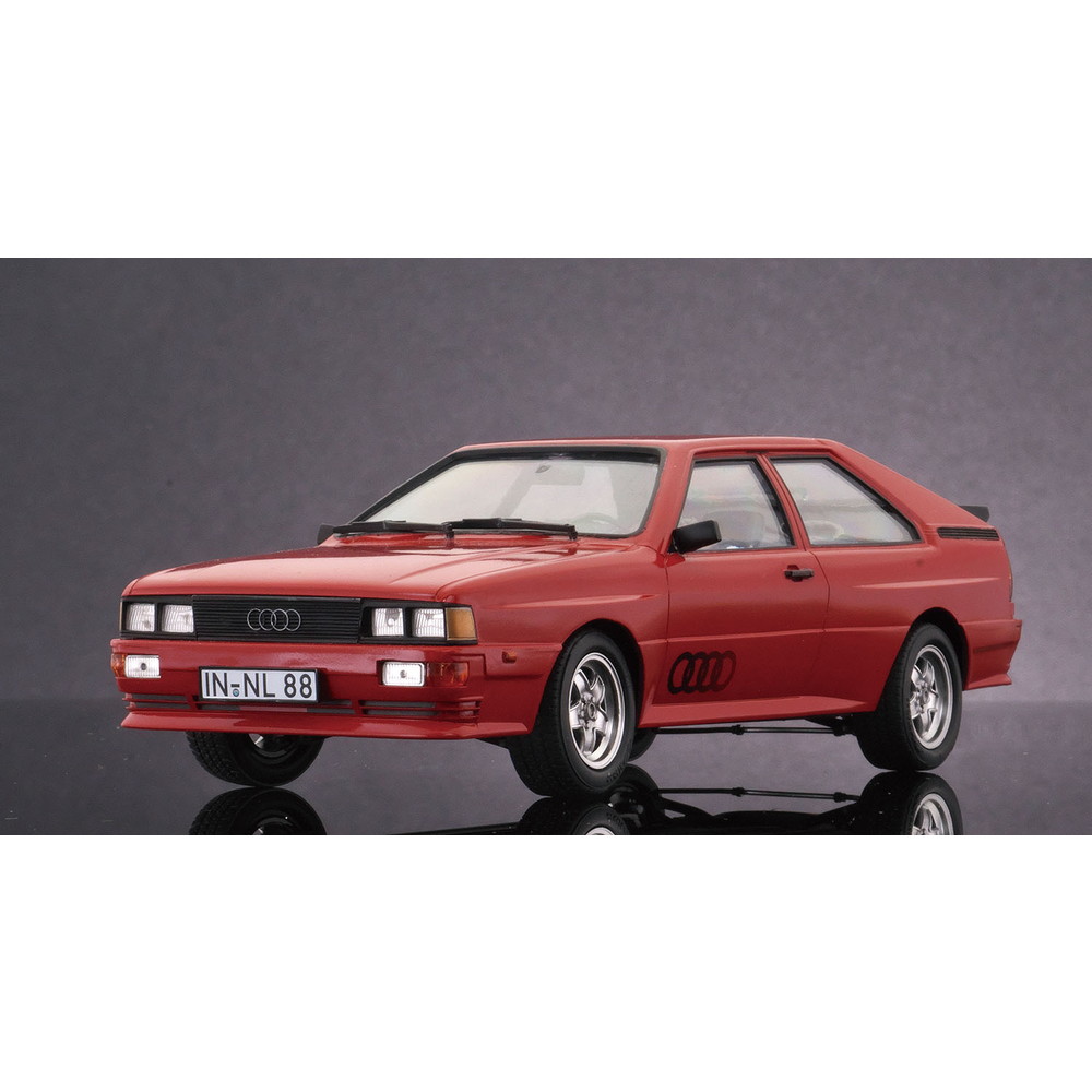 モデルは1980年に登場したフルタイム四輪駆動の2ドアクーペ、アウディ クワトロを1/24スケールで再現したプラスチックモデル組み立てキットです。
