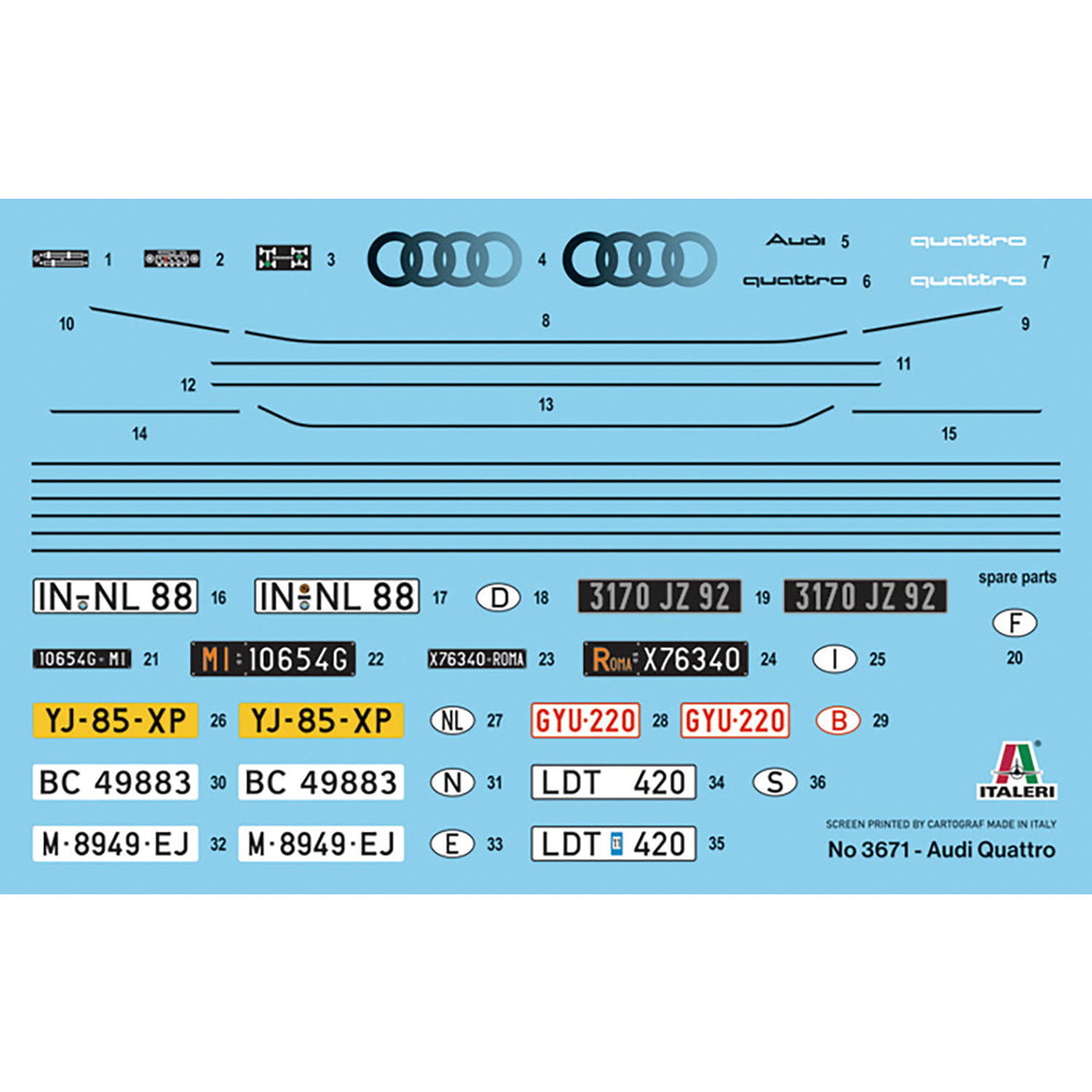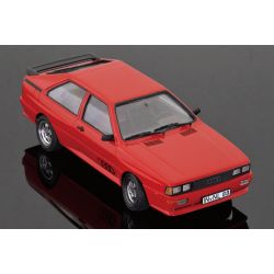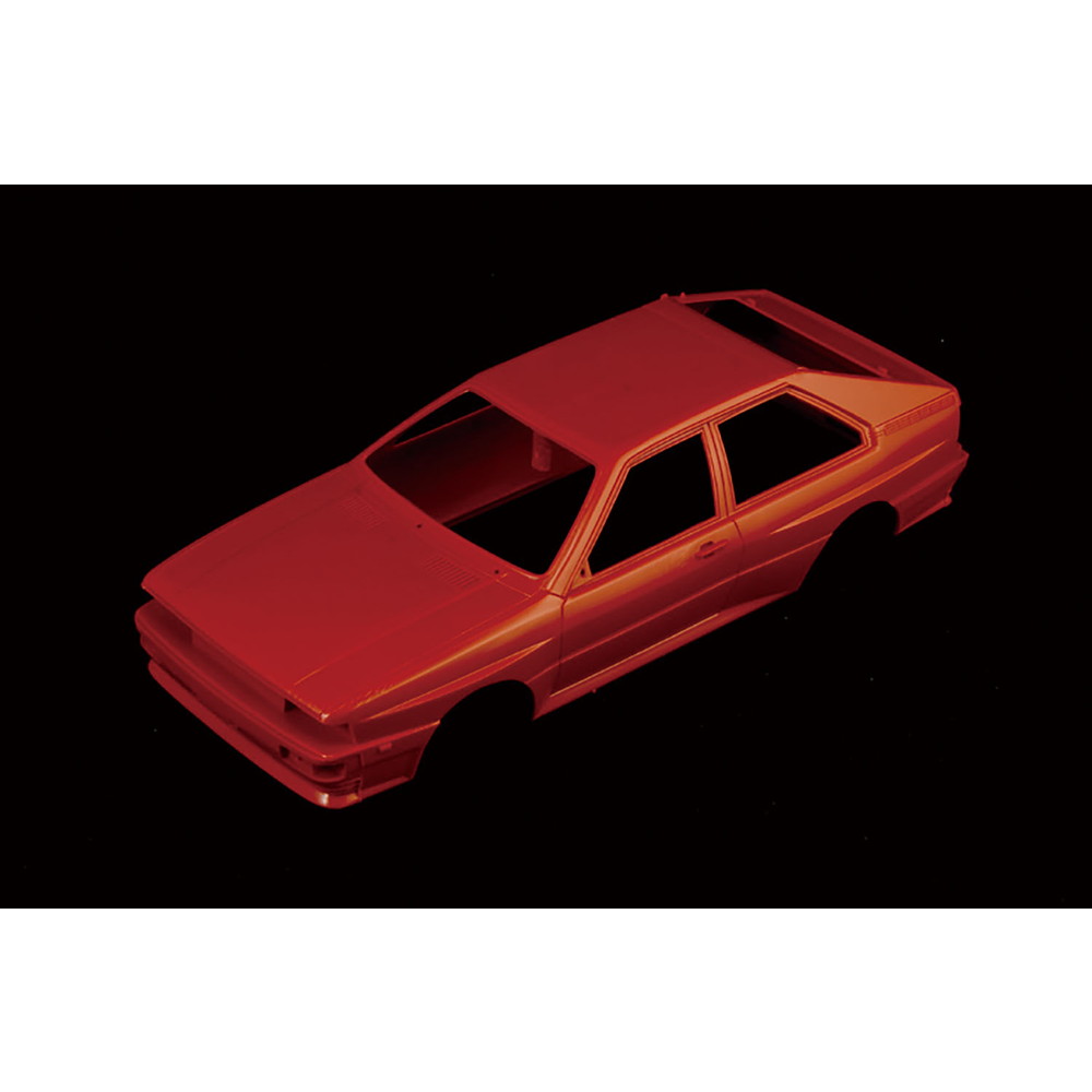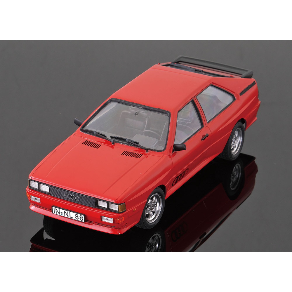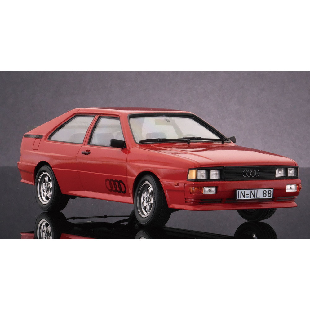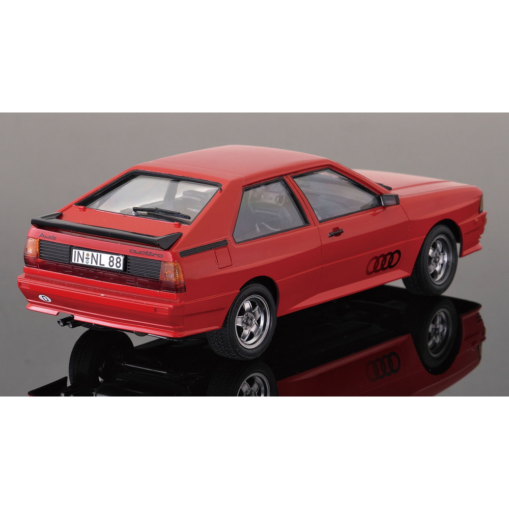 モデルは1980年に登場したフルタイム四輪駆動の2ドアクーペ、アウディ クワトロを1/24スケールで再現したプラスチックモデル組み立てキットです。