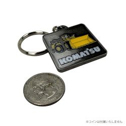 金属製のキーチェーンは日本の代表的な建設機械メーカーの一つ、小松製作所が製造する大型のブルドーザーとホイールローダのイラストが描かれた両面キーチェーンです。