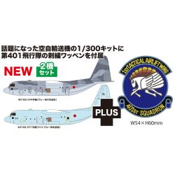 このキットでは航空自衛隊のC-130を運用する第401飛行隊マークのベルクロ付き刺繍ワッペンをボーナスでセット。キットのパーツは組み立てやすいエフトイズ製で特徴ある機体形状、デザインをしっかりと表現。