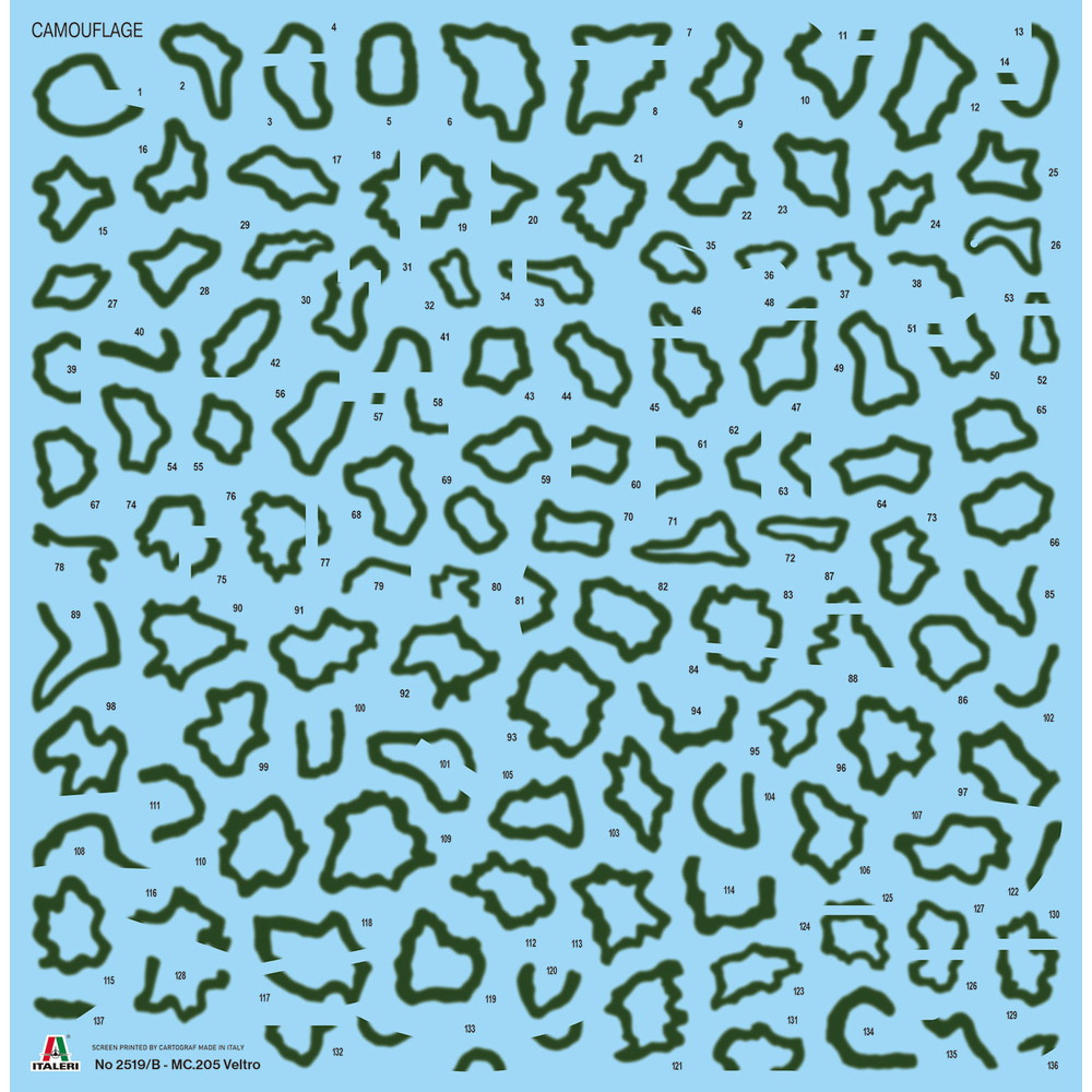 デカールは機体マーキングに加えてそのうち独特な迷彩模様も再現する大判デカールを用意。