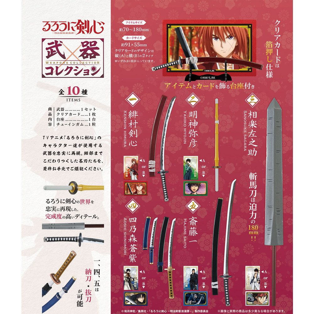 TVアニメ「るろうに剣心」のキャラクター達が使用する武器を忠実に再現。