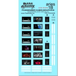 セットはメビウスモデルの1/48スケールのアリエス1B号の客室内部の仕上がりをリアルに演出するデカールとフィルムのセットです。