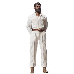身長は約31cm。ダンスフロアからそのまま転送されてきたような金のメダルが付いた白いジャンプスーツ、革ベルトにはウエスタンベルトバックルというカジュアルな服装でモデル化されています。