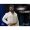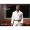 ●オープンネックの白いジャンプスーツにウエスタンベルトバックルの革ベルトを装着したカジュアルな服装で再現
