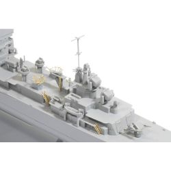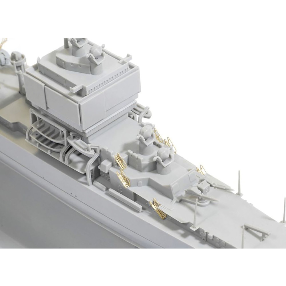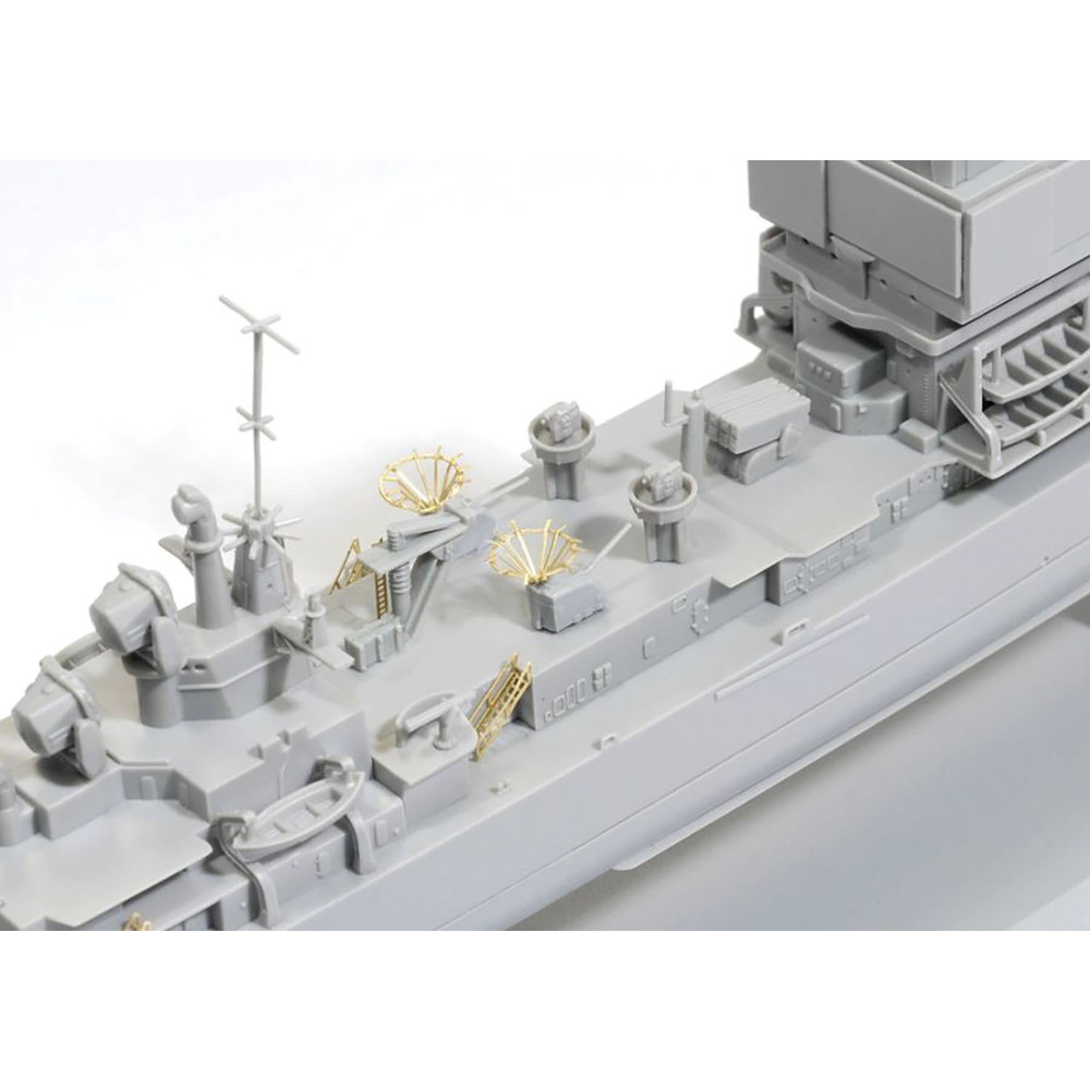 艦底まで再現するフルハル状態と喫水線から上を再現する洋上モデルのどちらか選んで組み立てることができるほか、5インチ砲を搭載する前の1961年就役当時の状態か、5インチ砲を搭載した後の状態も選択可能です。