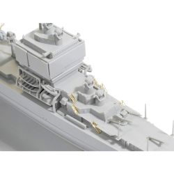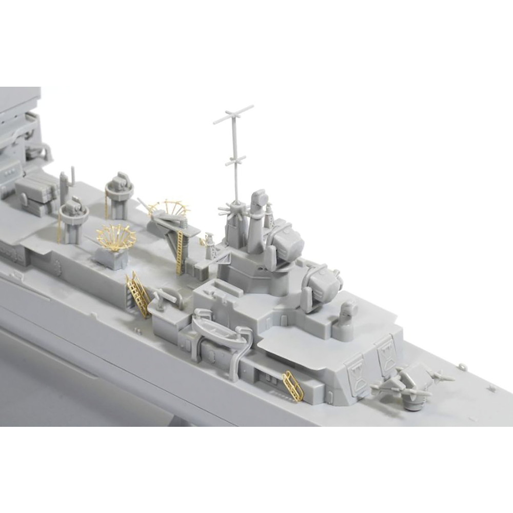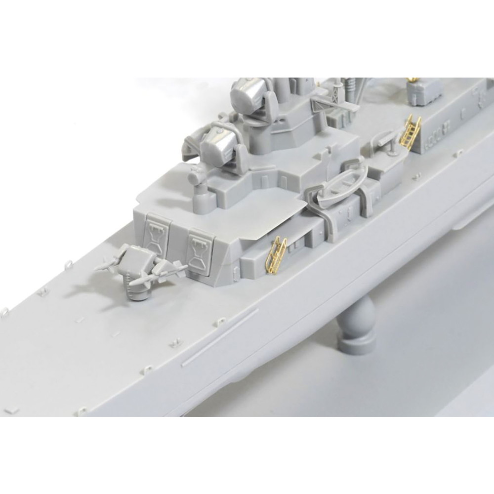 砲身の先端は開口され、組み立て後も上下可動。さらに、ミサイルやアスロックSUM発射機などの兵装も繊細にモデル化しています。